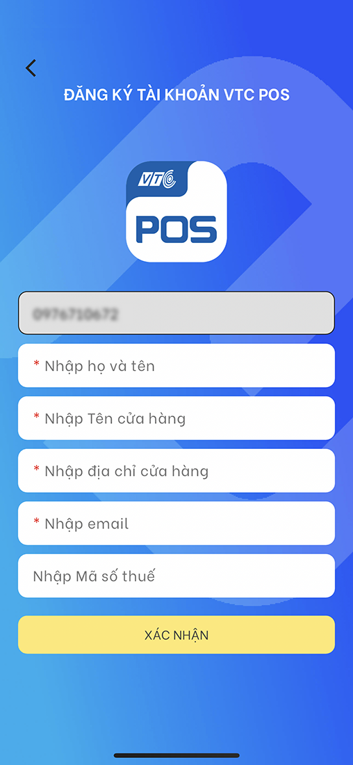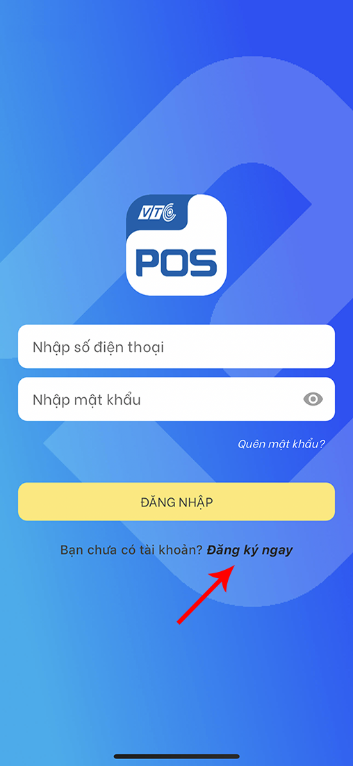 Bước 1: Tải app VTC POS, nhấp chọn ĐĂNG KÝ