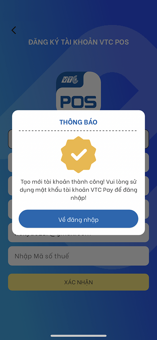 Bước 4: Xác nhận hoàn thành đăng ký và đăng nhập theo hướng dẫn